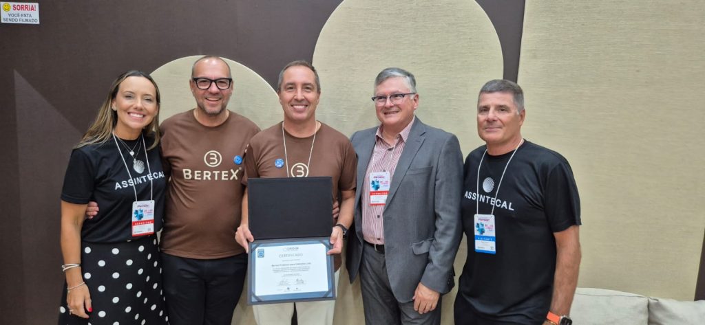 A Bertex, indústria de laminados sintéticos, foi uma das certificadas na Fimec. No estande da empresa, a superintendente da Assintecal, Silvana Dilly, entregou a recertificação no nível Diamante (mais de 80% dos indicadores do programa alcançados). A Bertex teve upgrade do nível Ouro para o máximo na recertificação. “Para nós da Bertex, atingir o nível Diamante não é apenas a conquista de um selo ou um diferencial competitivo, é a confirmação de que a nossa crença de que a moda deve ser ágil, justa, consciente, responsável e plenamente realizável no dia a dia de uma indústria”, comenta o gestor Administrativo da empresa, Mauro de Paula, acrescentando que a acreditação representa o ápice de uma jornada de quase duas décadas.